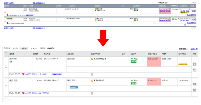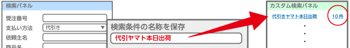 検索条件を保存することができるだけでなく、保存した条件の受注データ件数が一目でわかります!