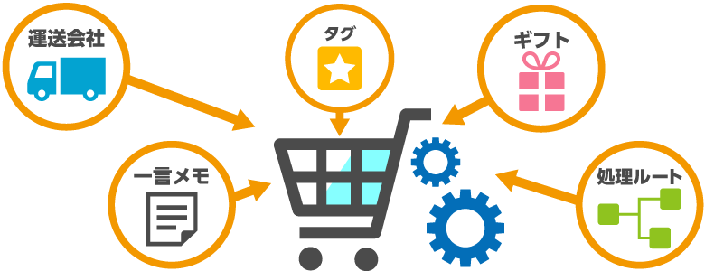 処理内容をあらかじめ設定しておくことで、タグを付与したり、運送会社を商品毎に振り分けるなど、今まで手作業で行っていた作業を自動で処理することができます!
