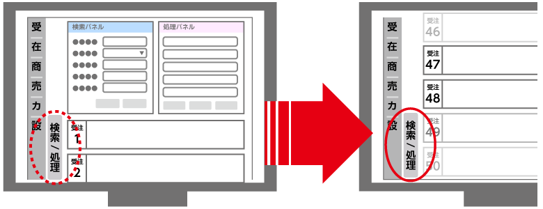 画面をスクロールしても「検索・処理」ボタンが常に表示されているため、どの位置にいても検索と処理の操作が可能です!
