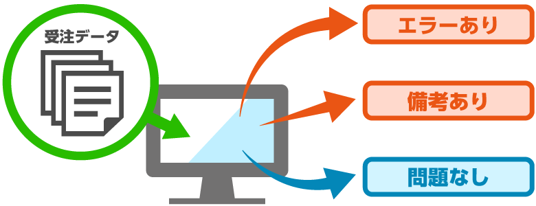受注データを取込むと、エラーや備考のあるデータを判別し、自動で抽出!